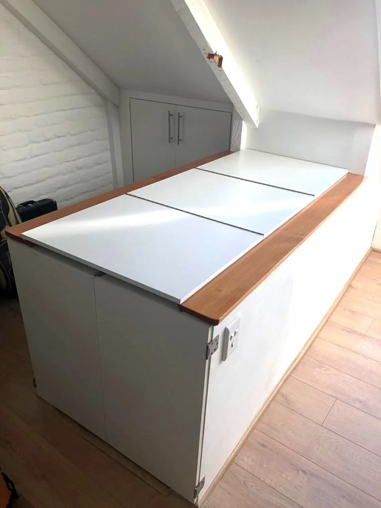 A young couple expecting their first child came to us for help transforming an unused attic into a home office. The attic was in poor shape – it was structurally unsafe and completely uninsulated, there was limited head height, and the space was dark and depressing. Complicating the space was gaining access from the small spaces on the ground.