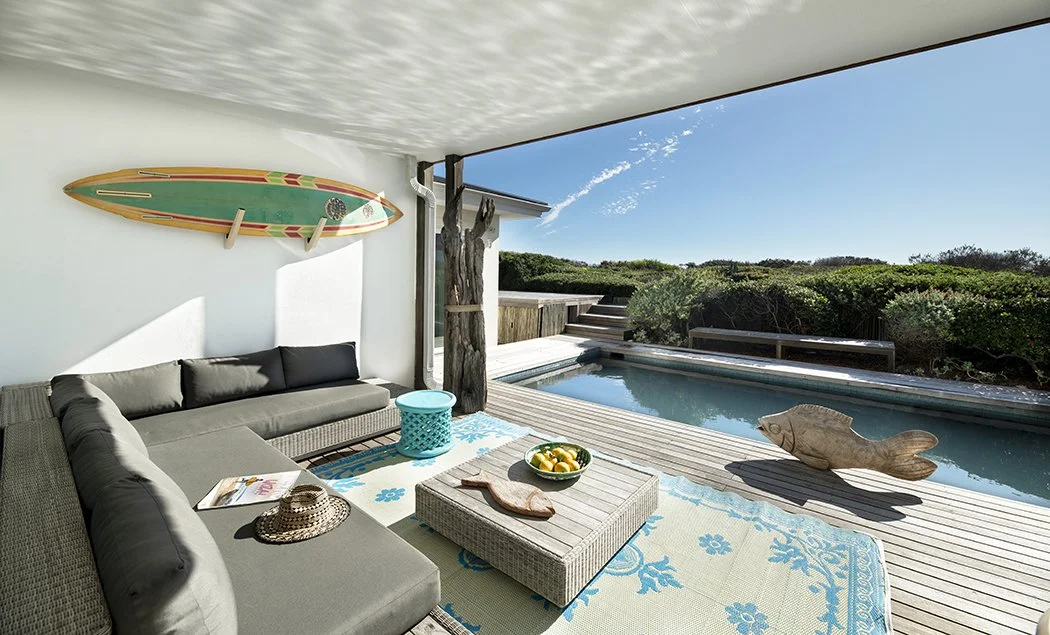 “This dreamy beach house tucked behind a dune on Kommetjie’s beach combines quiet sophistication with everyday ease.”